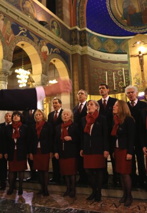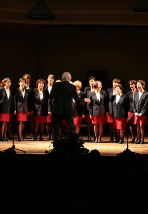 Il coro Nigritella e il coro Les Choralines Korholen nell'esecuzione congiunta di Bro Goz Ma Zadoù