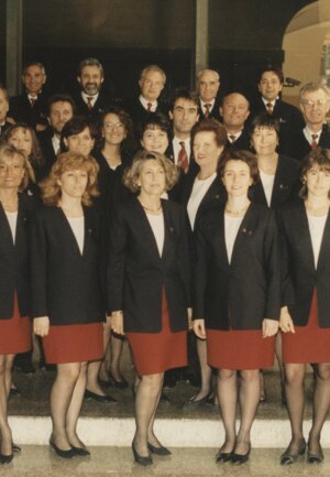 da sinistra: Vincent Christophe, direttore del coro Les Choralines Korholen, Maurizia Tomatis, direttrice del coro Sol Maggiore, Willem Tousijn, direttore del coro Nigritella
